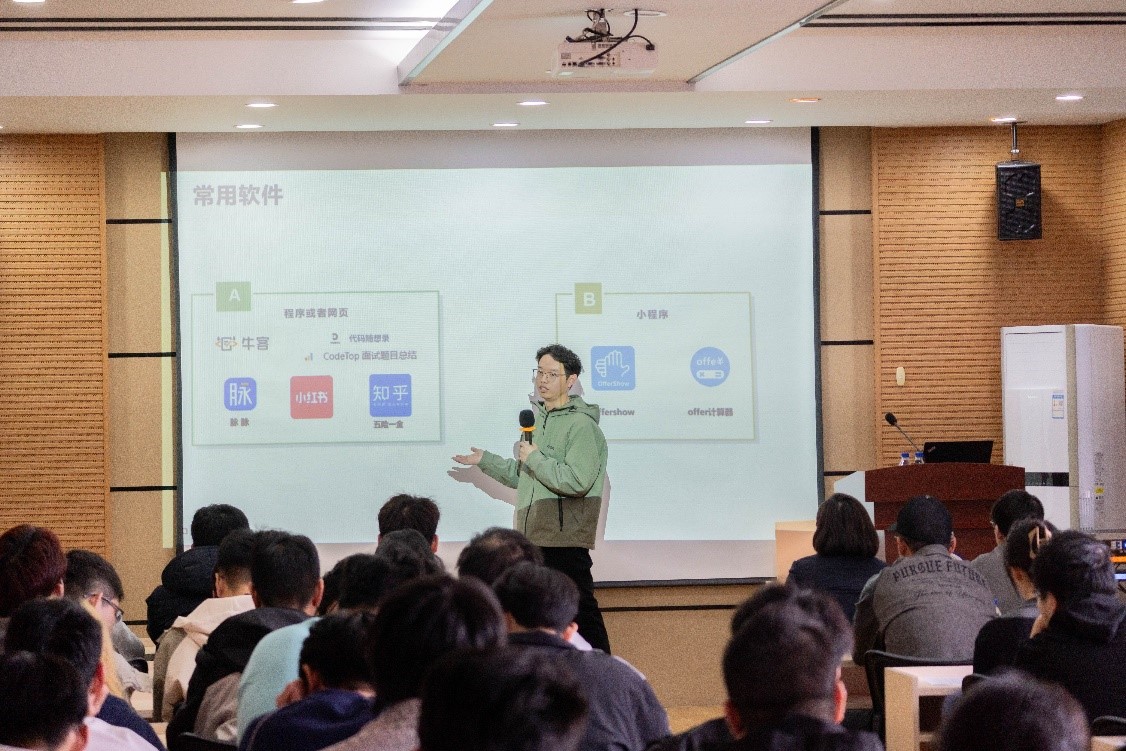 陈同学现身说法,分享自身百度求职历程。他着重指出简历制作要锚定应聘岗位关键技术,力求简洁凝练。提醒同学们要关注岗位信息,把握时机早投、多投、精投,保持自信心,提前做好充足准备。